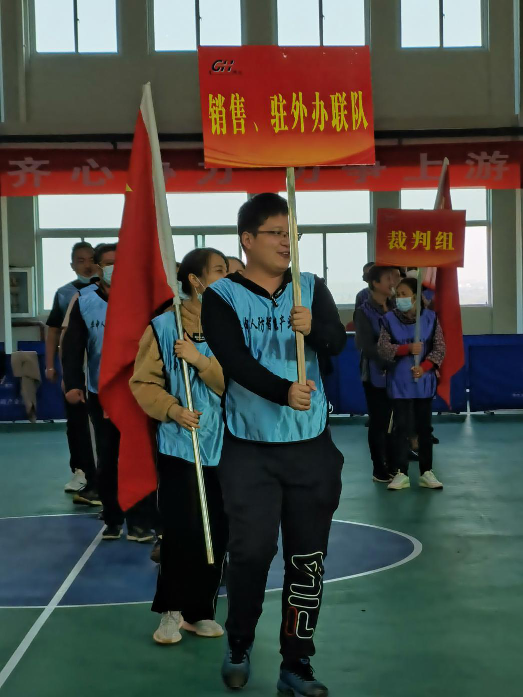 借助自身優(yōu)質(zhì)資源,今年的職工運動會在基地體育中心舉辦,場地視野開闊,“青春無悔、激情無限”“永不言棄、勇創(chuàng)佳績”的大幅標(biāo)語映入眼簾。工程部運動員喊著響亮的口號邁著整齊步伐入場拉開了本次運動會的序幕。賽前,基地領(lǐng)導(dǎo)公司總經(jīng)理余忠玉先生作“賽前動員”。他表示,趣味運動會不僅考驗員工們的身體素質(zhì),更需要大家發(fā)揮團隊精神、協(xié)作精神、奉獻精神。希望所有員工享受比賽、增進交流,賽出成績、賽出水平、賽出人防人昂揚向上的精神風(fēng)貌。