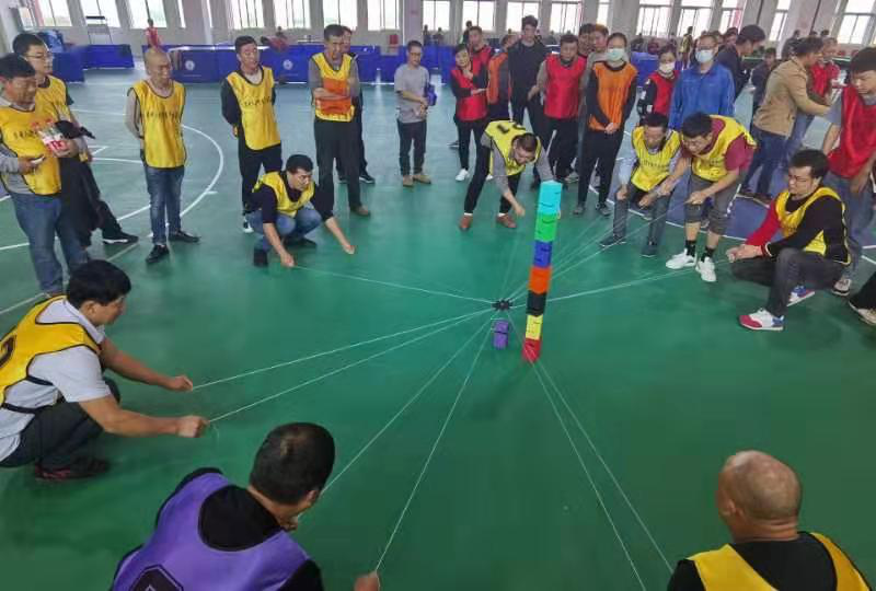 吶喊聲此起彼伏,歡笑聲回蕩天空。在合力建塔項目中,8名隊員分別從不同方向牽引中心的小塔,壘得越高,即為取勝。隊員們聚精會神地盯著小塔,在隊長的指揮下,或拉緊引繩、或放松繩子,或邁著矯健的步伐迅速移動,調(diào)整方向,齊心協(xié)力以最快速度將塔壘起來。一陣歡呼響起,原來是一隊壘出了最好成績,隊員們分享著勝利的喜悅。